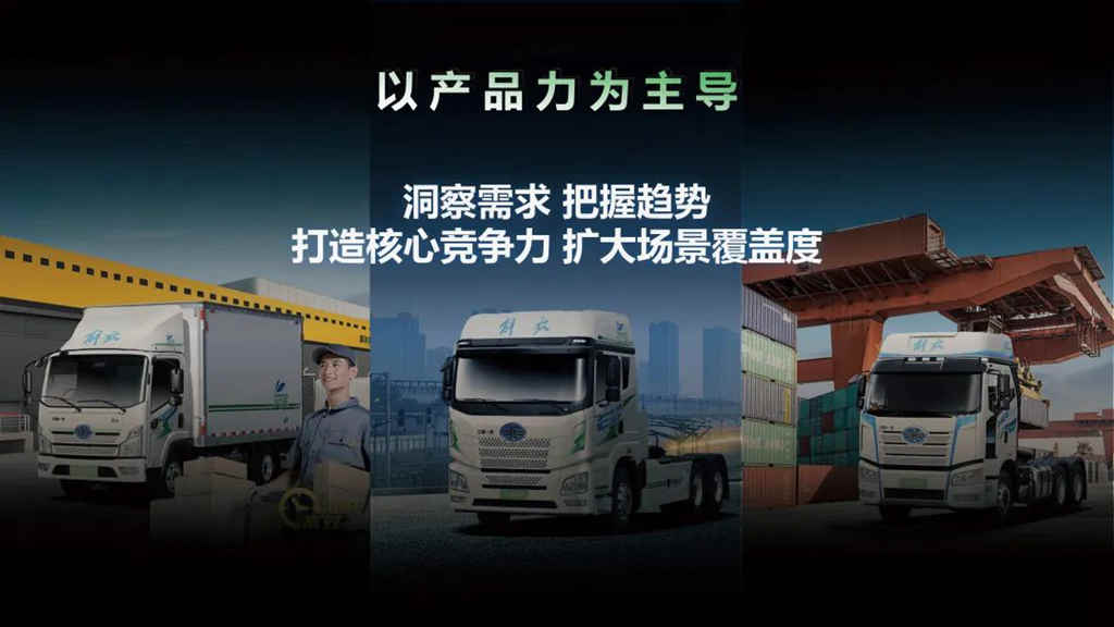 一汽解放将致力于成为E时代全球商用车技术引领者、标准制定者、价值创造者,为广大客户提供“中国第一、世界一流”的新能源智慧交通运输解决方案。要逐步实现新能源市场份额高于传统车,新能源销量占比高于全行业的“两高”目标。新能源的时代已经来临,一汽解放作为商用车行业的引领者,国家双碳战略目标的践行者,正在踏着坚实的步伐,披坚执锐,构建解放新能源转型的恢弘蓝图。解放将以推动新能源汽车行业健康发展为重要使命,持续为用户创造价值,为社会创造财富,为国家的碧水蓝天贡献解放力量。