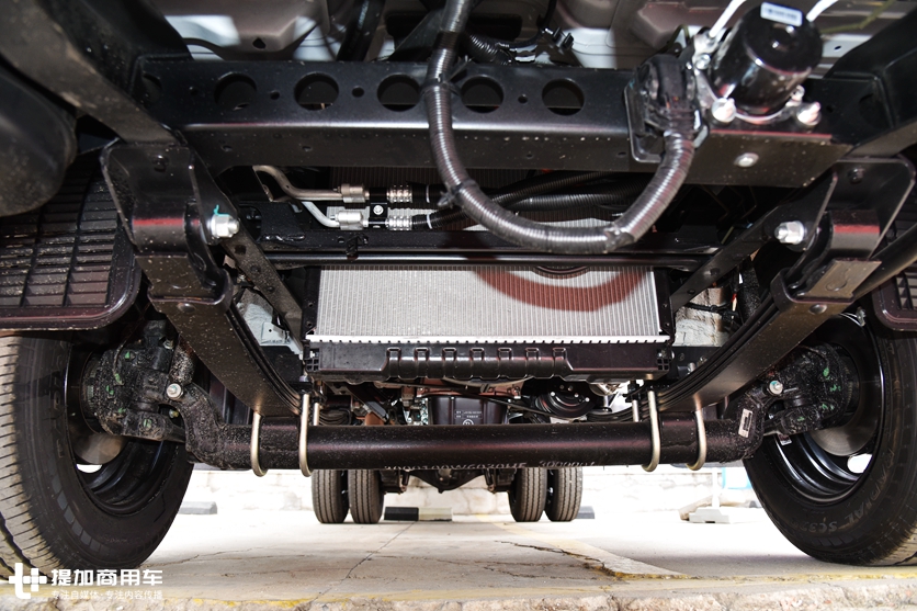 作为一台用来拉货的轿卡,为了能更好的承载货物,悬挂方式为钢板簧,但X5在钢板簧的基础上又为每个车轮单独加入一个避震器,既兼顾了载货能力,还增强了驾乘舒适度。
