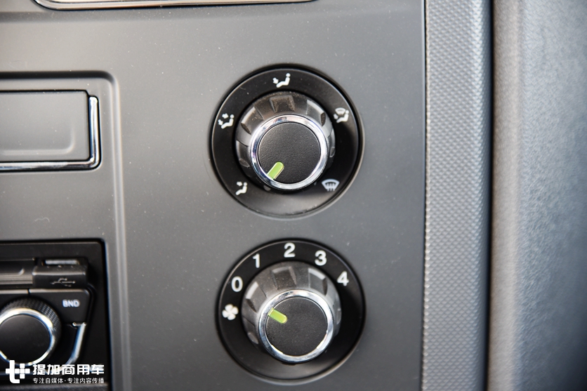 中控上分布着空调系统和一些功能按键,试着拧了下空调旋钮,阻尼适中,和操作轿车上的旋钮手感并无二致。