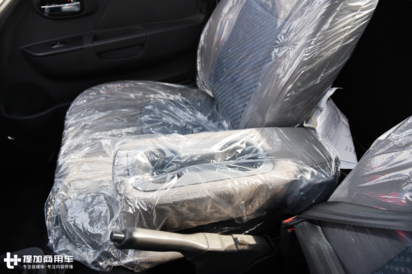座椅为织物面料座椅,支持前后调节以及靠背角度调节,在副驾驶位置,另外多出一个臂托,平时做臂托用,也可以用来做杯托。