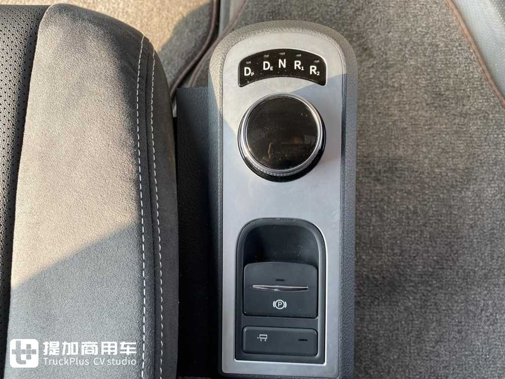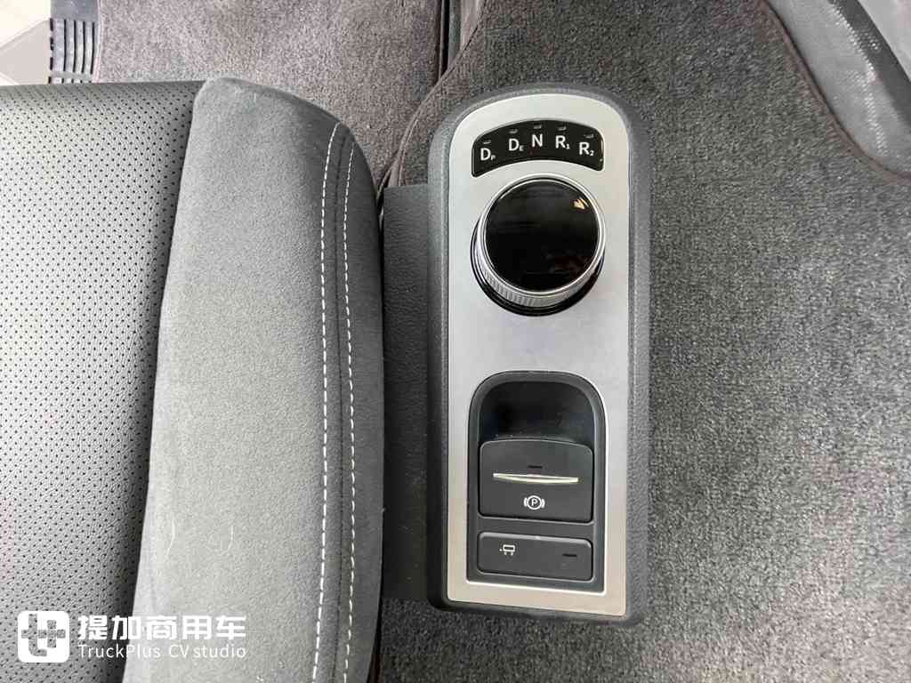 换挡机构采用旋钮式换挡,从图中可以看出这辆车还配备了一个电子手刹,并且是可以同挂车一起操作的。这一块控制面板与气囊座椅上下随动,不会因为座椅浮动而影响操作。
