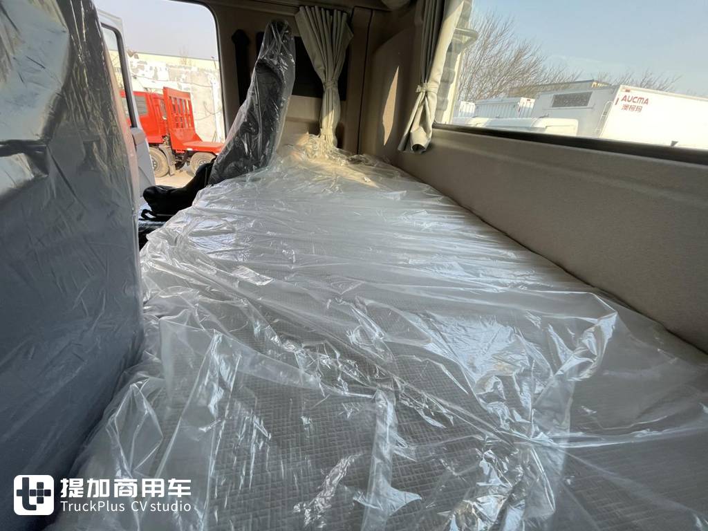 卧铺的宽度更是达到了880mm,床垫的厚度也有100mm,在卧铺头部位置有储物格、USB充电口、车窗控制、多媒体控制等操作面板,这样的休息条件完全可以媲美进口重卡。