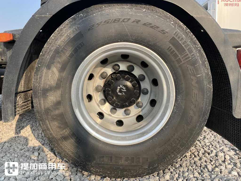 车辆的悬架是前2片钢板+后4气囊的组合方式,后部气囊在基础的减震作用以外,还有来自克诺尔的电控技术,可对气囊的高低进行任意调节,适合接驳挂车、靠台等多种场景,这样一来便大大降低了甩挂运输的难度,让运行变得更加高效。