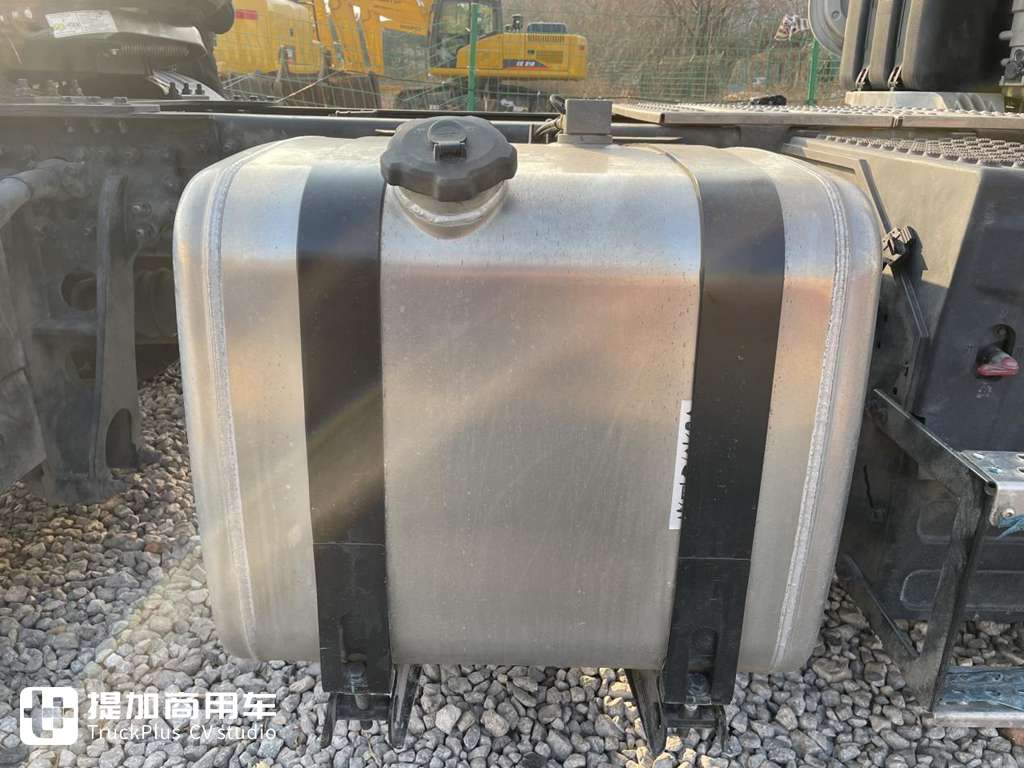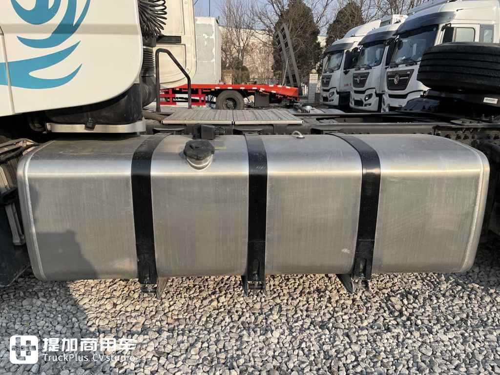天龙GX的4X2底盘是一个长轴距的规格,所以油箱的布置可以适当的进行加大,为了保证长途干线物流能有一个良好的续航能力,天龙GX牵引车在大梁两侧各设了一个铝合金油箱,总容量可达1250L,满油的情况下大部分长距离线路中途都不用补油。