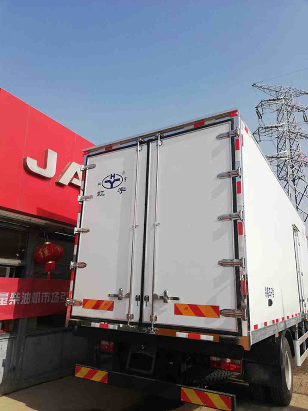 之所以选择这款车,除了省油之外,还有朱师傅从业多年积累的冷链运输心得:肉类属于易腐易损食品,和其他货物不一样,它的品质容易受到温度和时间影响,所以运输时对温度的要求特别高,除了冷机的制冷效果外,车厢的保温性、密封性也是非常重要;还有就是车子的动力一定要好,货物装满时,冷机要运转,动力要是跟不上,时效性就完全没办法保证。