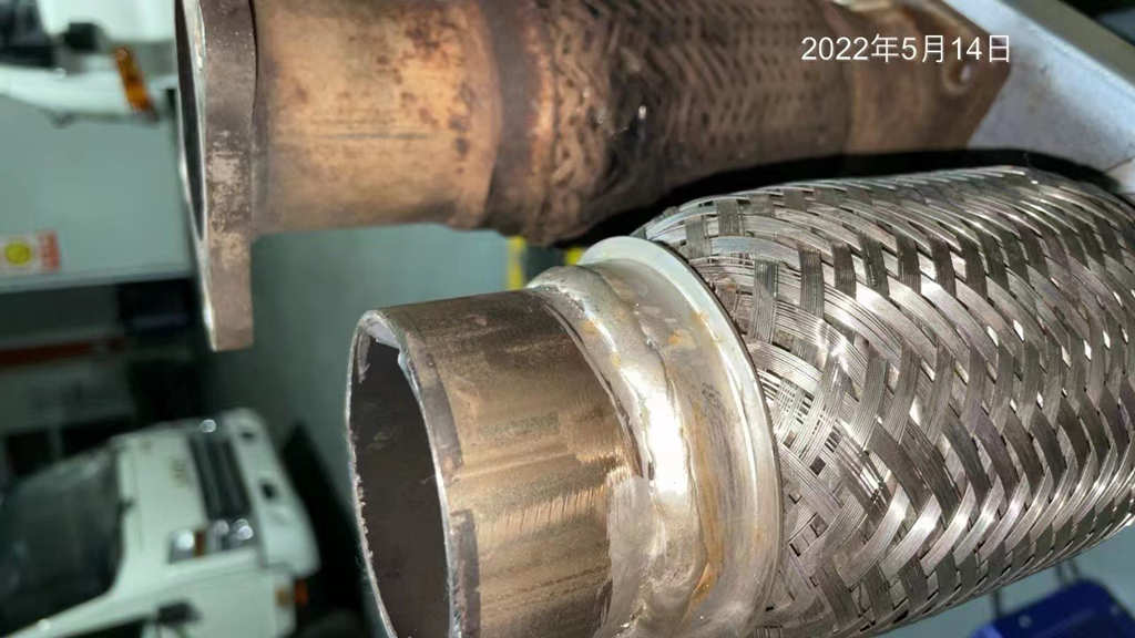 原来,由于长时间高强度行驶,车辆排气管位置的软管出现了破损导致漏气。服务站救援人员准备好相关配件和工具后立刻驾车赶往报修点,驾车途中发现核酸检测证明快过期限,很有可能在救援后无法返回南通市。但保障抗疫物资运输情况紧急,已经顾不上许多,尽快修好运输车是首要任务。