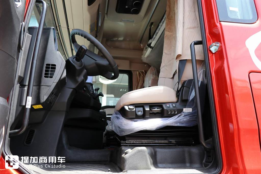 副驾驶采用伊思灵华泰NTS870型号的座椅,功能性上基本无差别,也可以享受到与主驾驶相同的待遇,如果是有卡嫂跟车或者双驾,副驾驶也会是一个很舒服的工位。