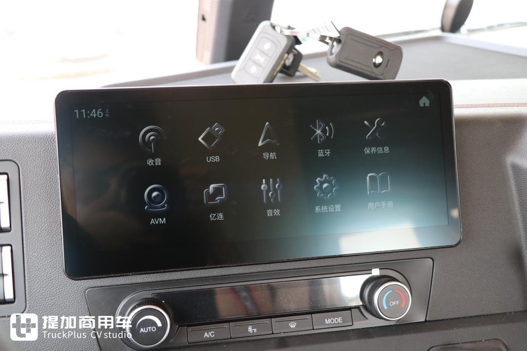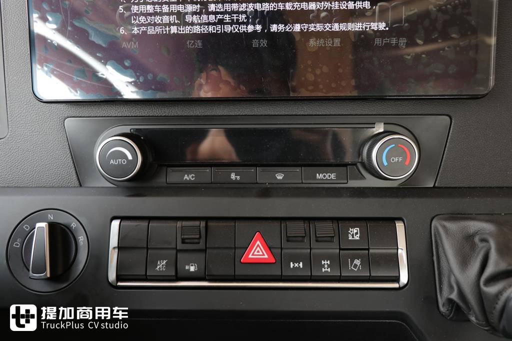 空调系统采用自动空调,可实现分区恒温和10秒制冷。按键集中于空调面板下方,差速锁和油箱转换按键带有锁片,防止误触。