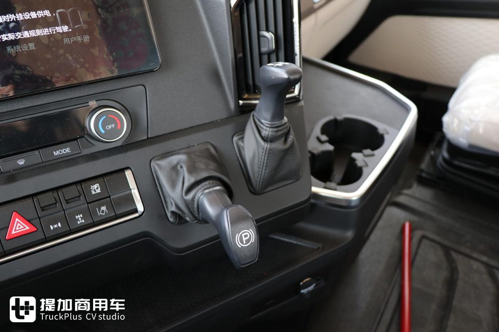主挂的制动手柄集成在工作台右侧位置,实拍车辆采用机械手柄,用户还可以选装电子手刹和自动驻车制动配置。