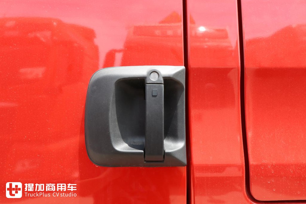 车门把手看似和老款相同,实际上还另藏玄机,把手上带有和高端乘用车相同的无钥匙进入按键,这样驾驶员在上下车时就可以省去掏钥匙锁车的步骤了。