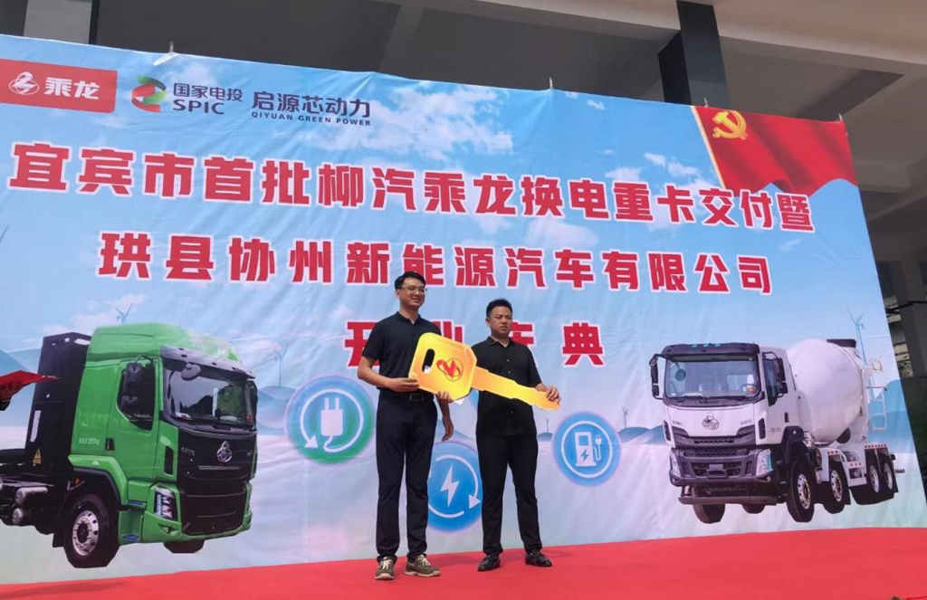 7月1日,宜宾市首批柳汽乘龙换电重卡交付暨珙县协州新能源汽车有限公司开业庆典在四川宜宾市珙县举行。在中国共产党建党101周年历史时刻 ,在珙县运输管理局、东风柳汽、国家电投等单位的领导嘉宾共同见证下,珙县协州新能源汽车有限公司正式开业,率先开启了宜宾市首家无碳排放运输的新征程。