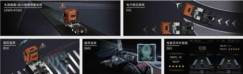 同时,车辆搭载了行业领先的LDWS+FCWS+ESC+TPMS等智能安全辅助系统,尤其是AEBS功能使整车具备紧急刹车辅助功能。丰富的安全配置大大提升了车辆运行时的安全性能。
