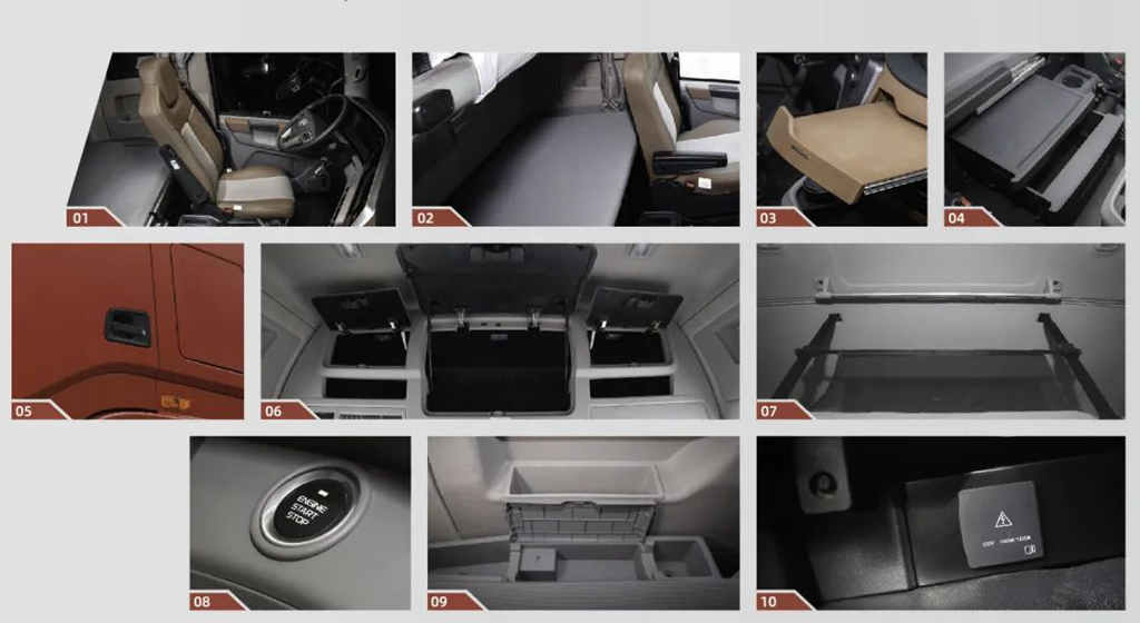 根据客户实际运输工况科学匹配动力链是选用国六龙擎DDi11 465马力发动机+龙擎DA14变速箱,带来敏锐响应和智能高效的动力体验。铝合金传动轴、康迈免维护轮毂、全车镁铝轮辋以及轻量化零部件的选配使车辆更轻,进一步降低油耗。