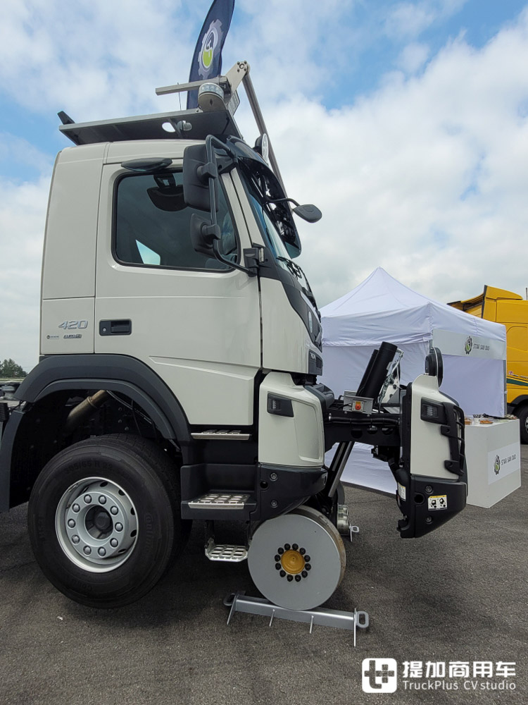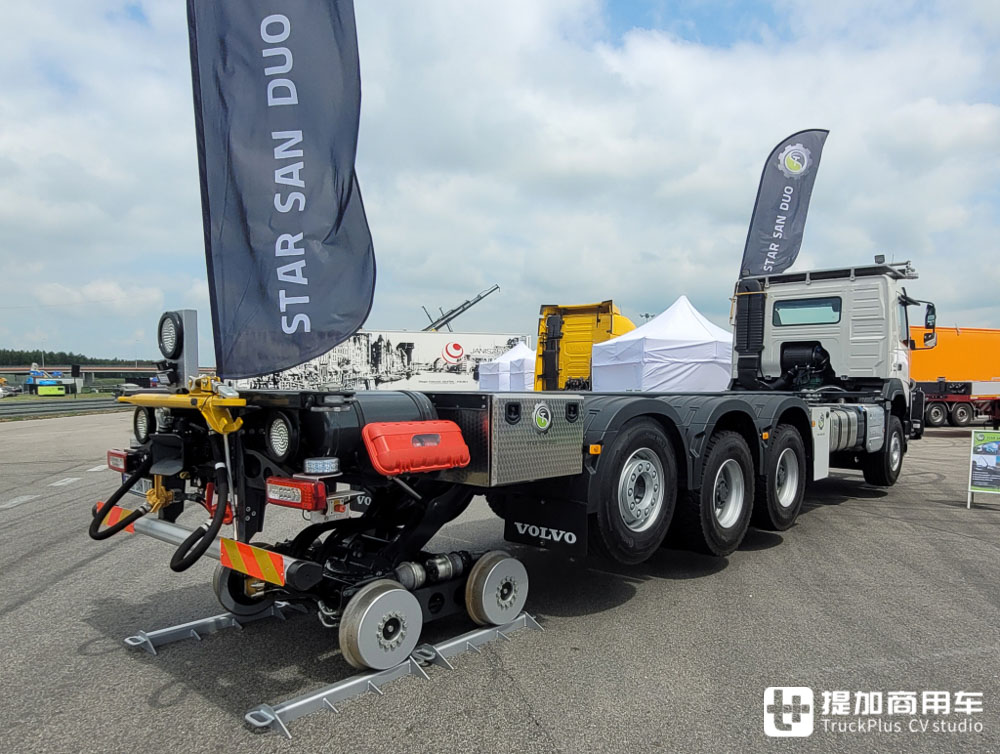 由STAR SAN DUO公司开发的路轨两用沃尔沃FMX也亮相了本次展会,不过用的还是上一代FMX。这种路轨两用车辆一般都会用于铁路工程、消防救险等领域,一般采用曼恩、奔驰底盘改装的较为常见。