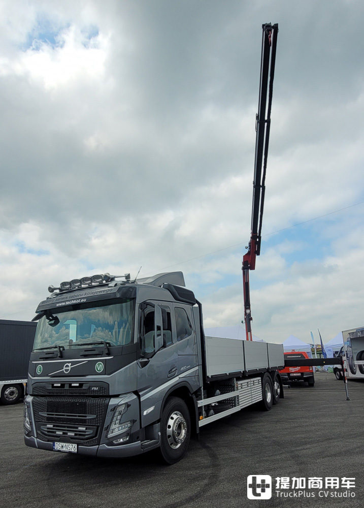 作为沃尔沃卡车辐射整个东欧乃至中亚的桥头堡,波兰市场至关重要。作为最新的发展态势,沃尔沃已经向波兰市场推出了其全系电动卡车产品线。上图中的电动版本沃尔沃FMX Electric已经是我们的老朋友了,它采用了8x4后提升的配置,配备了平顶带卧铺驾驶室以及帕尔菲格打造的随车吊以及平板上装。作为一台展示车,这台FMX电动随车吊一直在波兰呆着。