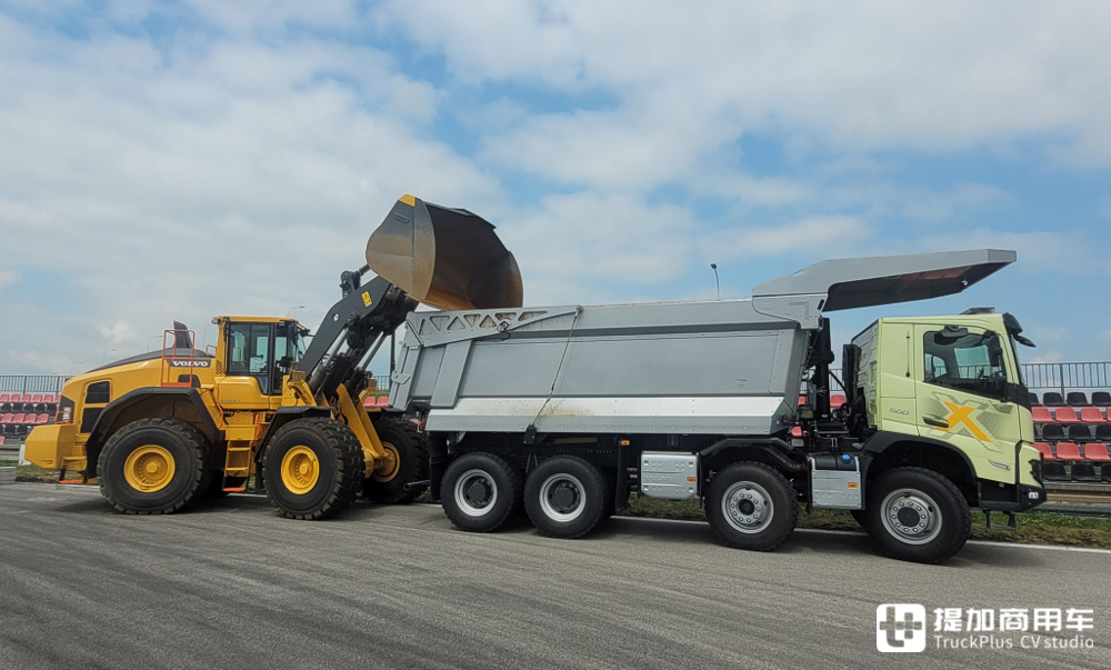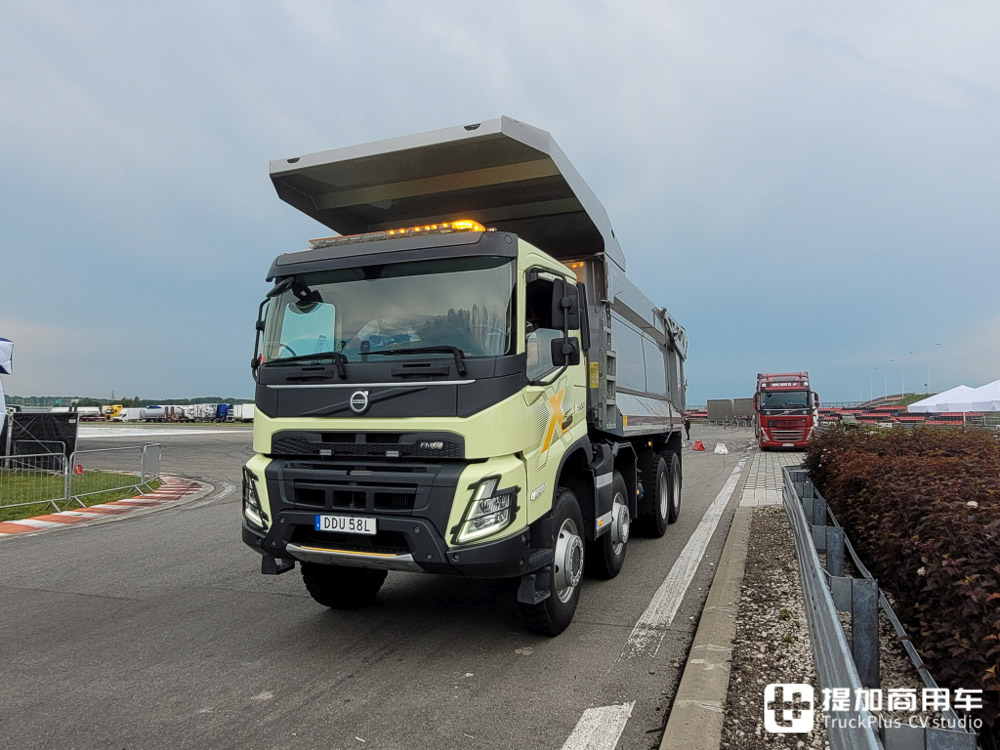针对东欧、中亚等地的矿山应用需求,重型沃尔沃FMX自卸车也有参展。超厚高强度钢+超长驾驶室顶部保护,预示着它不一般的身份。目前,沃尔沃能够提供6x6、8x8、8x6、10x4等多种不同驱动形式的FMX矿用自卸车。