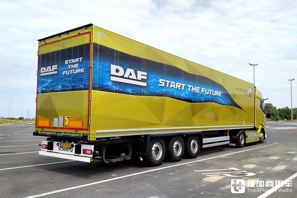 测试挂车采用达夫原厂提供的施密兹挂车,不带空气动力学套件,测试起来也更加的公平。
