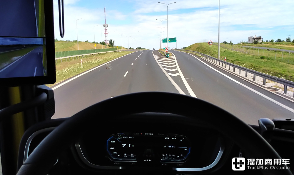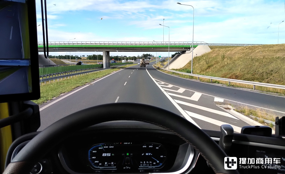 测试路线主要途径波兰的A2和A8高速公路,测试路段全长275公里,路段包含了上坡、下坡以及平地等工况。测试过程中主要使用达夫车载电脑的Eco动力模式,该模式将会把巡航速度限制在85km/h左右。期间,也有人工介入,手动加速至90km/h。