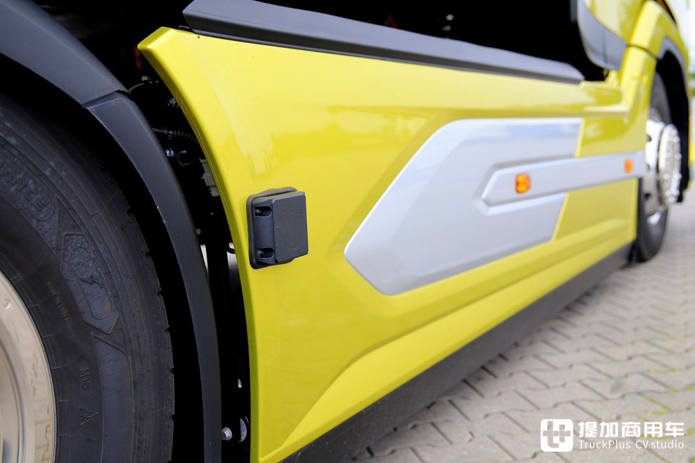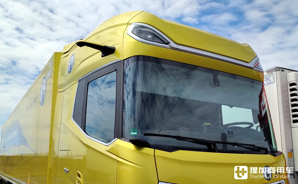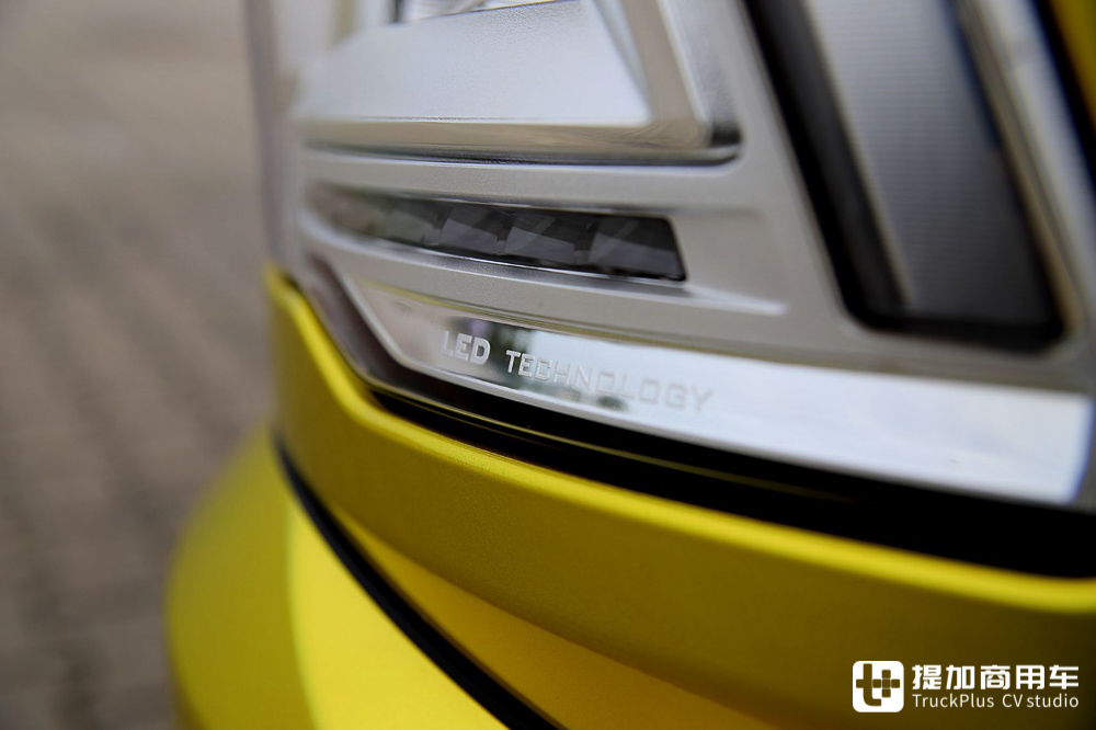 LED大灯采用大曲度设计,与车辆轮廓进行融合,也有助于降低风阻。顺带一提,达夫的LED大灯作为标准配置提供,而沃尔沃等品牌的LED大灯在欧洲就需要选配了。