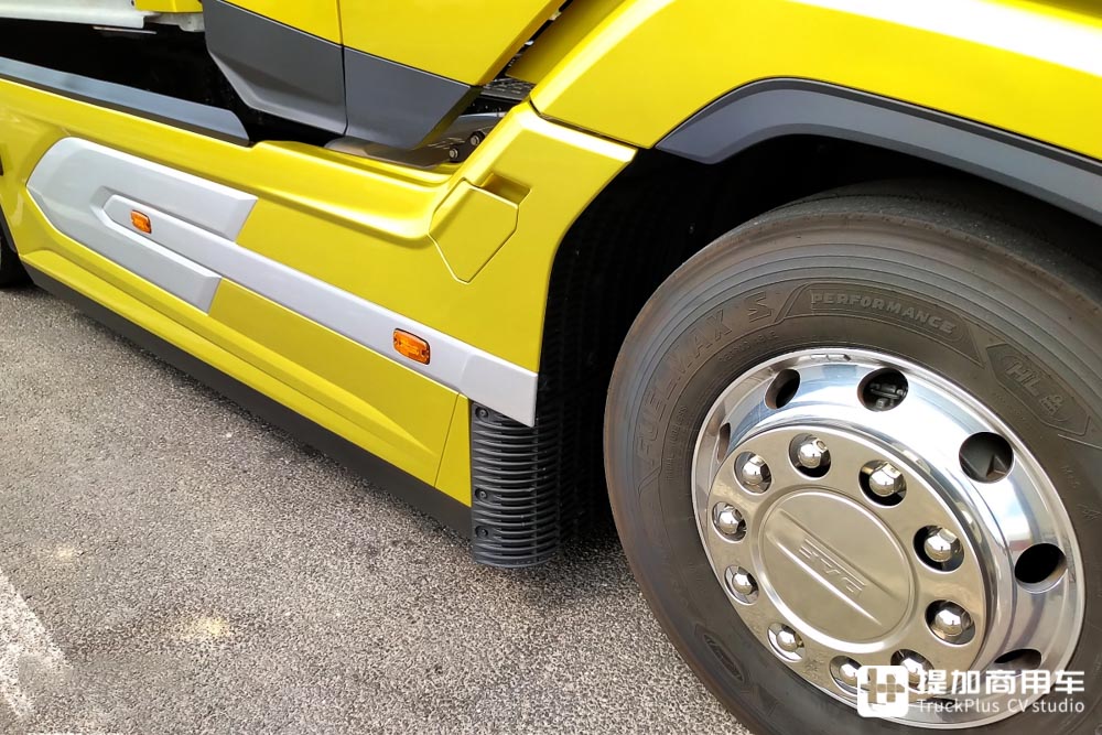 新一代达夫XG+在车辆外部运用了许多的低风阻设计。别看它是一台看起来很普通的平头卡车,也没运用什么低风阻造型,但每个细节其实都精雕细琢。比如车辆的曲线更加平滑,车顶也引入了更多的弧形设计,在保持车辆辨识度的同时起到了降低风阻的效果。表面处理也变得更加精致,减少了气流流经时的粘滞阻力。