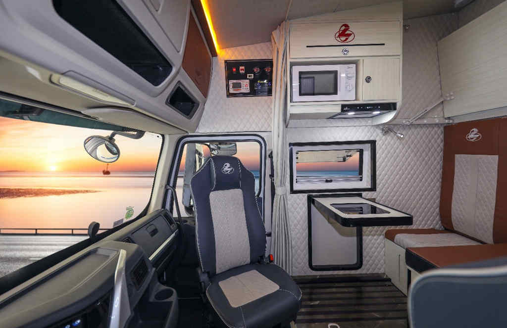 乘龙T7房车作为东风柳汽乘龙首创的高端物流重卡房车,集卡车与房车两大属性,将“人车家”融为一体,赋予卡车人“既要挣钱,也要享受生活”的全新生活方式。由于它的高安全、高收益、高舒适、高端定制属性,被取名为乘龙T7旅行家。