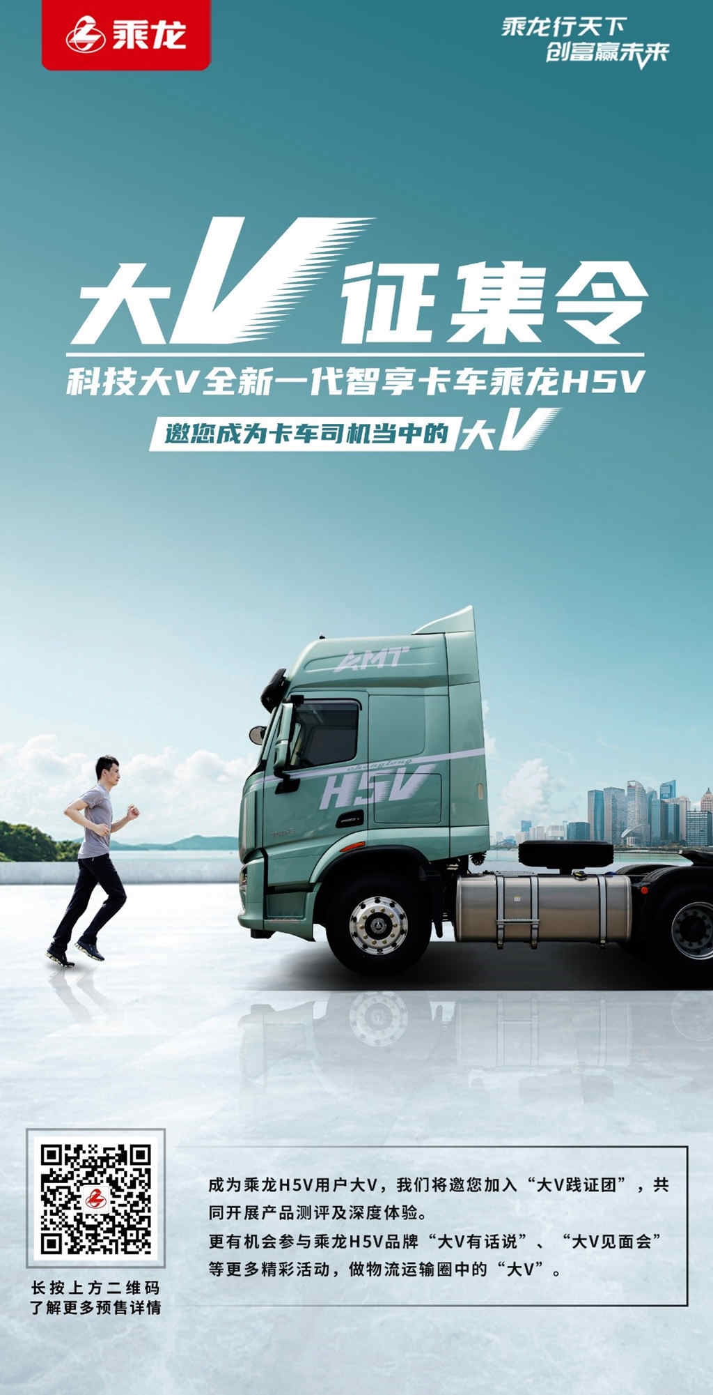 每个人心中都有关注与喜爱的大V,每个人都想成为有众多粉丝的大V。在开启预售的同时,乘龙“用户大V”也同步开启招募!