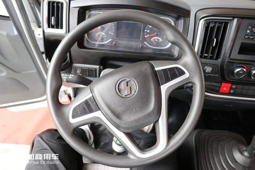 方向盘的造型是陕汽轻卡家族式的三幅式方向盘,中间带有银色饰条装饰更加美观。从方向盘上预留的按键位置来看,这款车后期可能会支持选配带有定速巡航和多媒体操控的多功能方向盘。