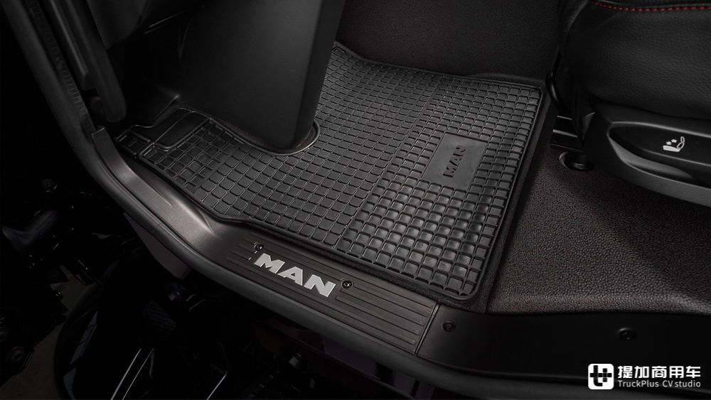 曼恩为TGS Individual Lion S车型设计了原厂橡胶地垫,增强地板的耐磨性能,并且十分便于清洁,直接拿水冲就行。