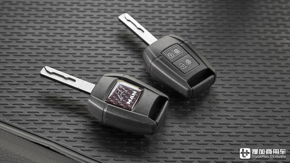 虽然车辆没有一键启动系统,不过曼恩还是在钥匙上下了点心思。在钥匙的logo面上,背景采用了碳纤维纹路,给人留下了深刻的印象。