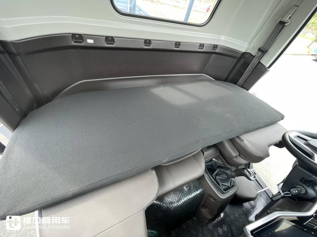 为了能让用户在车内得到良好的休息,骏铃金饭碗还为用户提供了车载卧铺的设计,将驾驶室内的座椅放平之后就会得到一个宽1080mm的卧铺,让轻卡也能拥有重卡一样的休息环境,毕竟得到好的休息才能更有干劲。