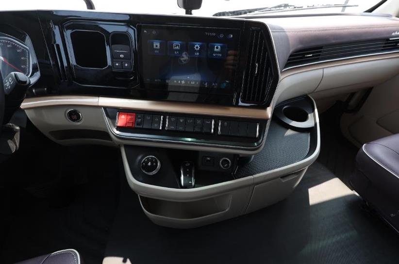 同时,车辆的内饰采用乘用车级别的品质材料,仪表台、门护板、方向盘均使用软质包覆;高端航空座椅用通风加热+按摩,长时间开车不累;抽拉式小桌板、室内晾衣杆、冷暖杯托等贴心设计,功能多样方便日常生活;7寸彩屏+10.1寸液晶大屏,集成手机互联、高清倒车影像、车联网、空调控制调节、蓝牙音乐、电话等功能,工作娱乐两不误。