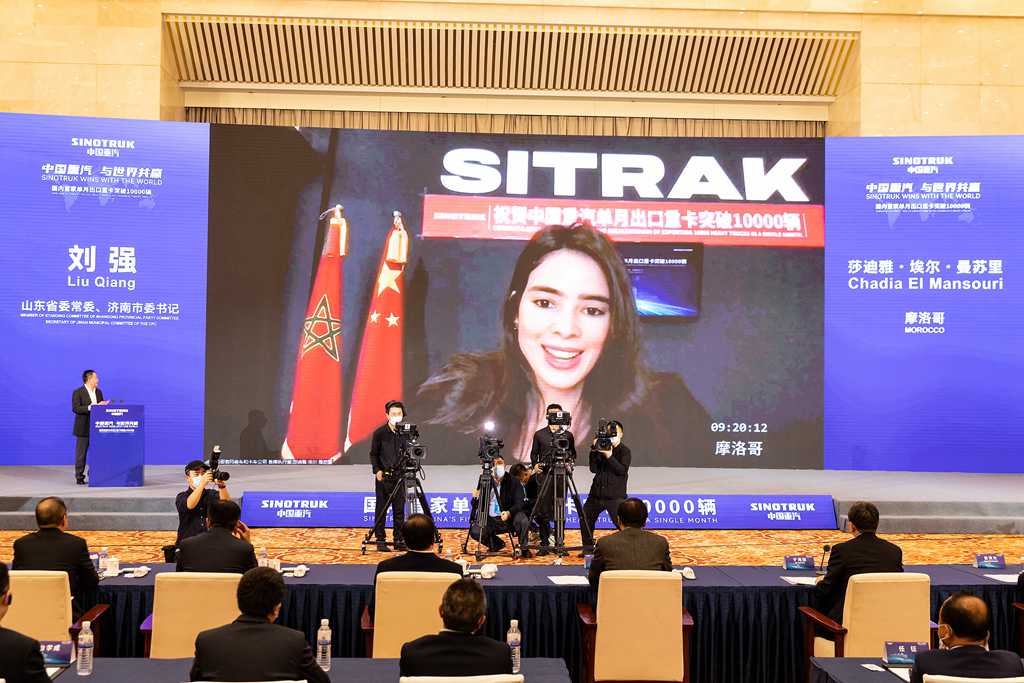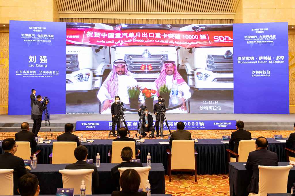10月31日下午,“中国重汽 与世界共赢——国内首家单月出口重卡突破10000辆 ”活动在山东大厦金色大厅举办。山东省委常委、济南市委书记刘强,济南市委副书记、市长于海田,山东重工集团党委书记、董事长,中国重汽集团党委书记、董事长谭旭光,山东省、济南市相关部门领导参加活动。全球100多个国家、310多家经销商、客户代表线上参加。