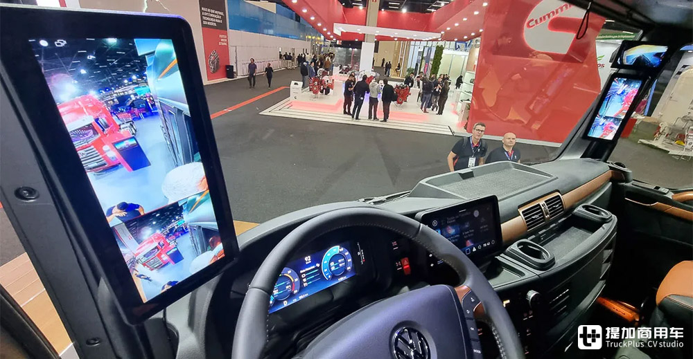凭什么?凭借车辆的设计。你会发现:传统的后视镜消失不见,取而代之的是电子后视镜系统。不过这套电子后视镜系统并不是曼恩的Optiview系统,后续我们会提到这点。车辆采用巴西生产的曼恩D26发动机,这台发动机进行了改进,因此能使用HVO等燃料。搭配采埃孚TraXon变速箱,整体动力水平可谓相当不错。