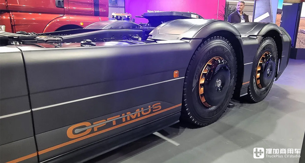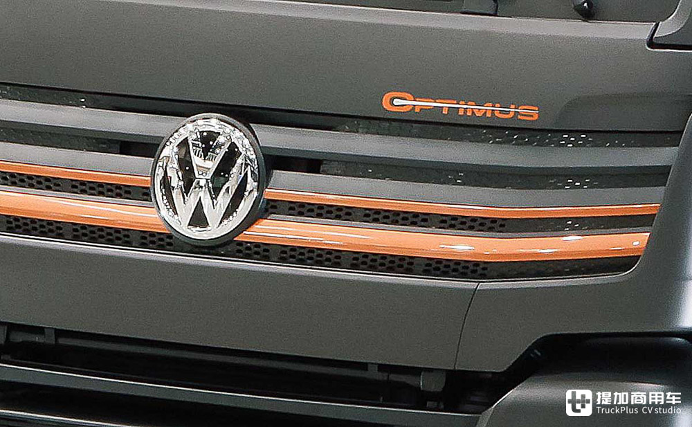 当然,为了避免对曼恩TGX的定位产生冲击,大众Meteor还是做出了不少的差异化设计。例如车辆前面罩,大众Meteor换装了横条前面罩,中央镶嵌有大众LOGO。虽然造型还和曼恩TGX的款式保持一致,但看起来已经是天差地别了。而在前面罩之下,大众Meteor和曼恩TGX的长相就非常相似,镀铬条装饰、保险杠样式都如出一辙。在这台Meteor Optimus上,原有的镀铬装饰条进行了熏黑,以此来体现车辆的高端。