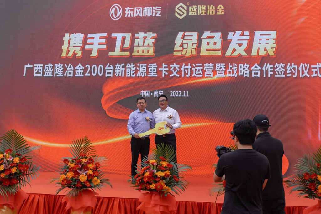11月22日,在东风柳汽与广西盛隆冶金有限公司(下称广西盛隆)等领导及媒体嘉宾的共同见证下,“携手卫蓝 绿色发展”广西盛隆200台乘龙H5新能源批量交付运营暨战略合作签约仪式在广西隆重举行。