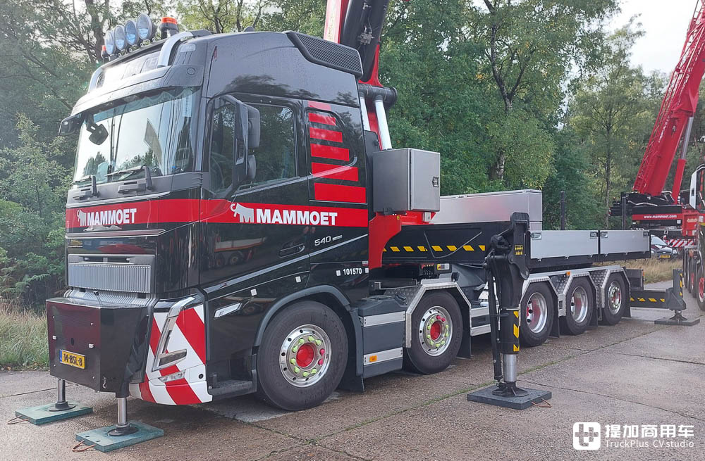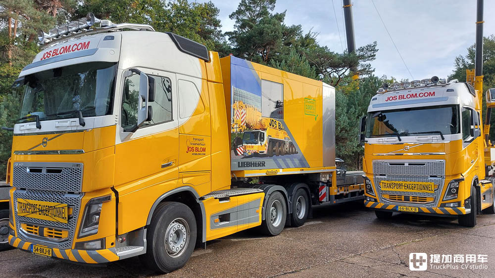 这两台黄白相间的沃尔沃FH牵引车都来自JOS BLOM公司,这家公司专精于吊装,是德国利勃海尔的大客户,也是代理商之一。