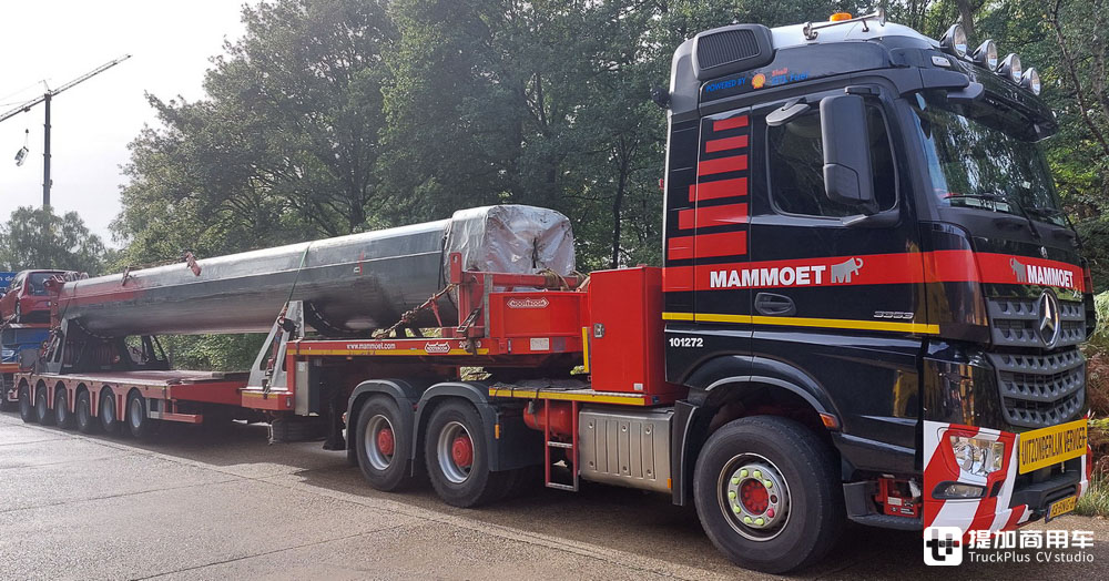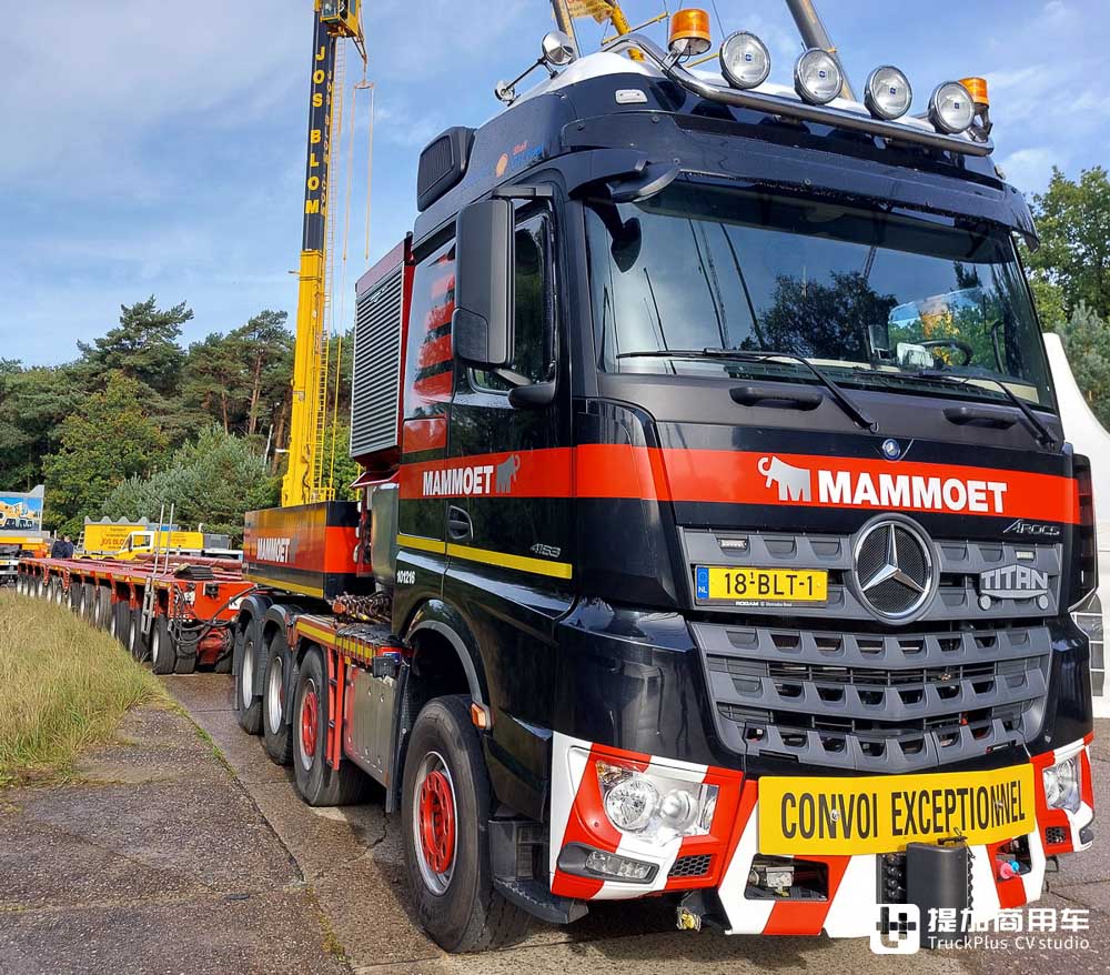 还有一台Arocs 3353 6x4牵引车,用于运输吊臂等吊装附属设备。