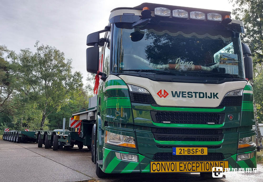 WESTDIJK公司也是一家从事于重型机械运输的公司。因此,他们订购了一台特殊的斯堪尼亚P500 8x4牵引车。这款车型采用平顶驾驶室,为重型机械的臂架让出了广阔的空间。之后,我们也会出一篇这台卡车的介绍。