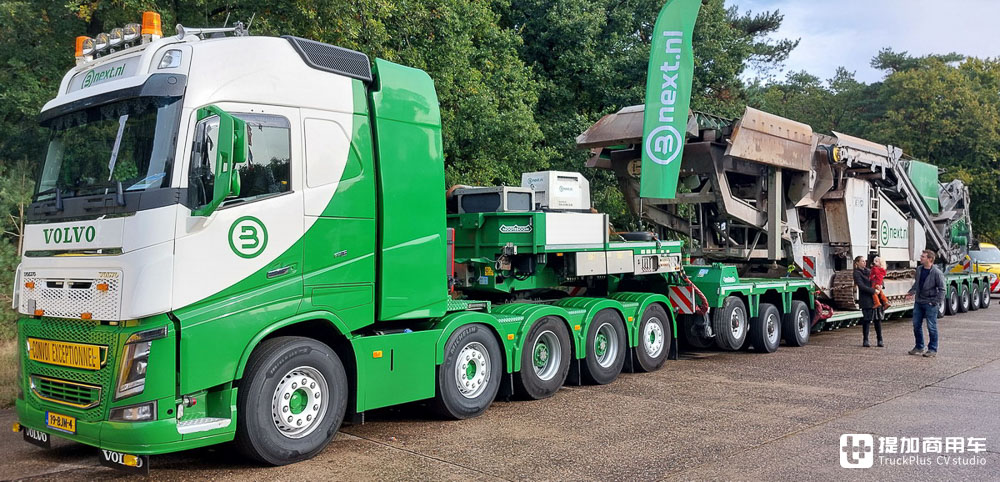 这台FH16 750五轴大件车相信大家都不陌生,它属于荷兰Beelen运输公司。随着Beelen公司战略转型,这台五轴FH16 750大件车也更换了新的涂装。不过,绿色依然是这台大件车的主色调。Beelen公司在建筑工程、材料回收利用等领域占有领先地位,旗下拥有多台挖掘机、冷铣刨机一类的机械设备,能够对建筑和道路进行拆修和回收。