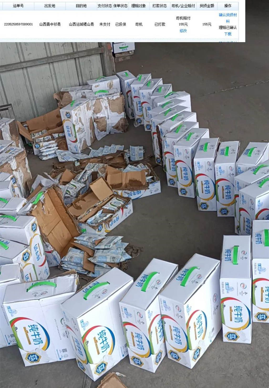 路歌「运费保障」不设免赔额,即使货损金额只有1块钱,也能申请赔付。每天,「运费保障」都会处理大量的小额赔案。今年6月,山西的郝师傅在运输牛奶的途中,因颠簸挤压造成39个纸箱破损,10袋牛奶破损,赔偿了货主方155元。路歌保障专员在核实了相关凭证后,帮助郝师傅成功挽回了155元的损失。