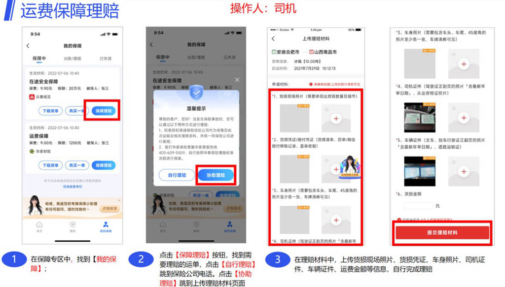 一直以来,保险复杂的理赔流程也让很多人望而却步,而路歌「运费保障」最大程度简化流程、优化服务,让货车司机能轻松高效地完成理赔,降低物流企业针对货损的沟通处理成本。