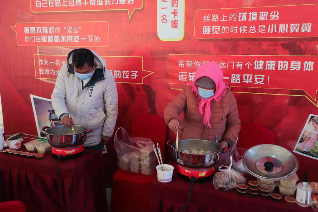 在丝路上的味道区,东风商用车特地邀请当地卡嫂代表为出门在外的卡友包饺子,在寒冬时节感受团圆氛围,漂泊在外品味家乡滋味。而在守卫丝路知音区,现场的大屏幕循环播放东风商用车幸福卡车关爱计划收集到的卡友及家人的真情流露,引起现场卡友的一致共鸣,让更多热心人士关注到丝路卡车人的艰辛与奉献。