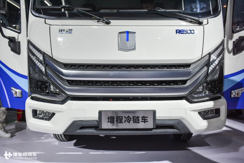 远程RE500增程式轻卡的驾驶室和远程之前纯电动E200相同,为了区分纯电动车和增程式电动车,RE500的前脸风格做了比较大的改动,弱化了日系轻卡立式大灯的设计风格。进气格栅横向扩大与大灯行成一体式设计,再加上大灯熏黑处理,前脸的一体性很强。