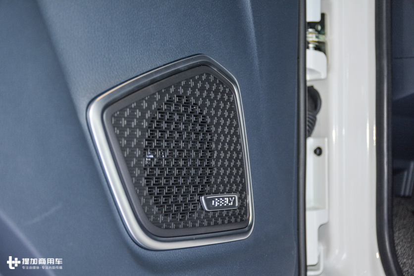 车门上的喇叭布满回字纹装饰,这是吉利在乘用车上已经运用很娴熟的设计元素,同样的设计还出现在阅读灯周围。顺带提一句,阅读灯也是和乘用车类似的设计,而不是普通轻卡廉价的卤素灯。