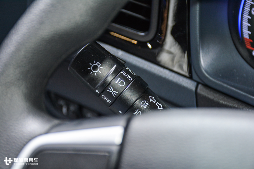 转向柱左右两侧的拨杆一看也是乘用车的风格,暂时不知道是吉利哪款车用的零部件,知道的可以说一声。前面忘了讲一项配置,前大灯是自动灯光,可以自动开启和关闭。