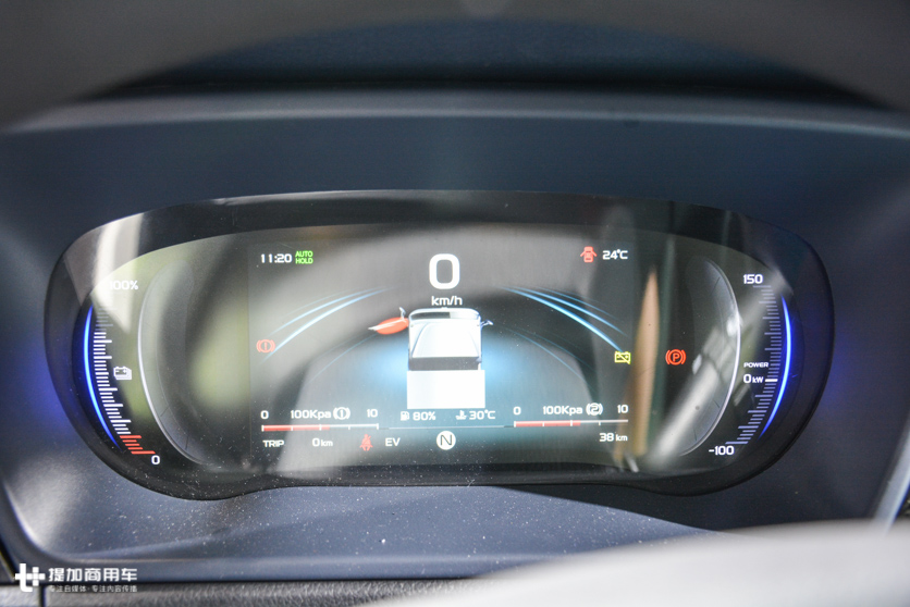 电机额定功率50kw,峰值功率100kw,对应的扭矩分别是350Nm和850N,电机参数配置和远程的纯电动轻卡一模一样,动力表现可以参考远程电动轻卡。