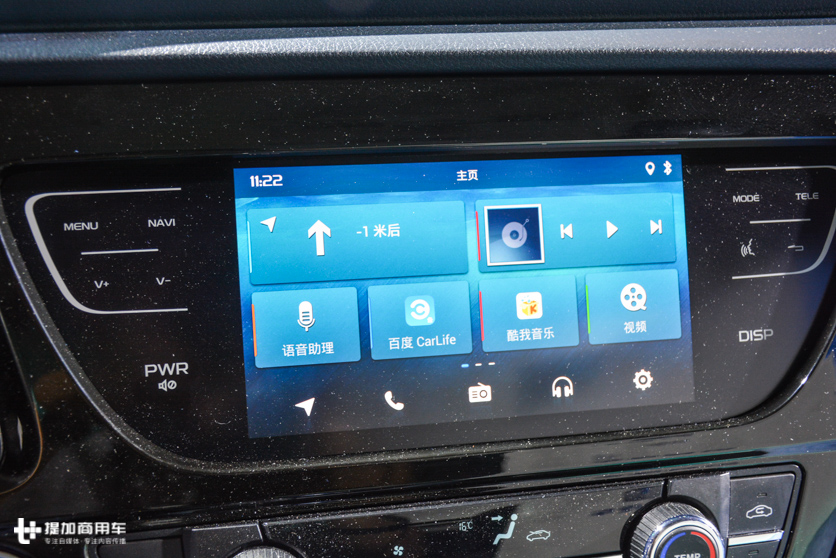 中控屏幕可以100%肯定是吉利乘用车的共用配件了,吉利帝豪GS用的就是一模一样的大屏,按键布局完全相同。不过内在软件还是有点不同的,导航已经换成了货车专用地图,不过界面比较老旧,无法和手机导航媲美。好在系统支持百度CarLife,可以和安卓手机互联,手机导航可以映射到中控屏幕上。整个系统的操作速度相对来说还是流畅,基本的操作触控都能及时的响应,不会按一下按钮要等一两秒才有反应的尴尬情况,可用程度比较高。