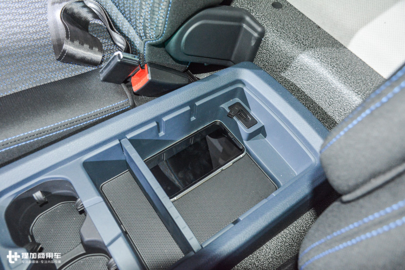 而副驾驶区域在中控台上的储物空间就要丰富一些,一个长条的储物槽刚好可以横向放入手机,长度大约也是2个手机的规格,再看到旁边的USB充电接口,不由得让人怀疑这个位置是不是专门给手机充电设计的。
