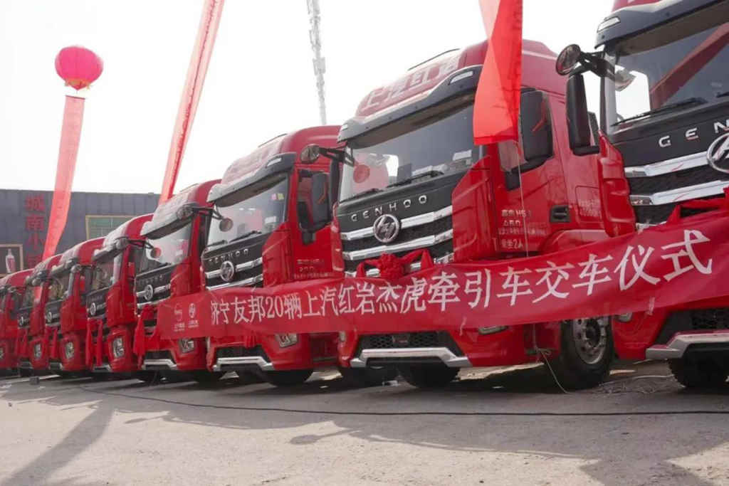 3月5日,上汽红岩杰虎H6牵引车在山东济宁批量交付,为用户带来了更加高效的煤炭运输解决方案。