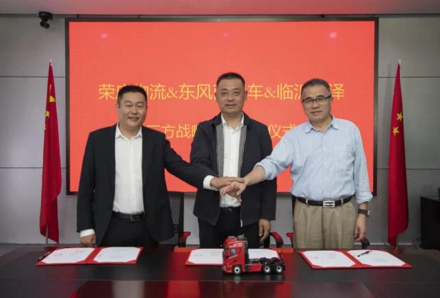 值得一提的是,张小帆一行参观了荣庆物流TES中心,对荣庆物流的企业历史和现有业务进行了详细了解,荣庆物流、东风商用车、临沂东泽在荣庆物流上海马陆园区举行了三方战略协议签约仪式。荣庆物流副总裁毕建伟表示:“荣庆物流对东风商用车有着深厚的历史情感,希望未来双方在原有合作模式基础上更进一步。”张小帆则对荣庆物流长期以来的信赖表示感谢:“荣庆物流自身拥有丰富的车队管理经验,在东风商用车为荣庆物流提供车辆服务的同时,荣庆物流也能够通过数据支持赋能东风商用车的智能驾驶卡车发展,期待双方在之后有更广阔的合作空间。” 以战略合作为契机,东风商用车将与荣庆物流建立良好沟通机制,同时充分发挥各自优势,积极探索合作模式,助力智慧物流新发展。